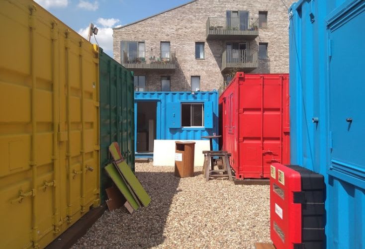 The site is comprised of a large practical workshop containing specialist equipment, repurposed shipping containers for makers who want their own space, and shared studios with large desks and storage facilities. An adjoining cafe keeps members and visitors caffeinated and well-fed throughout the day.