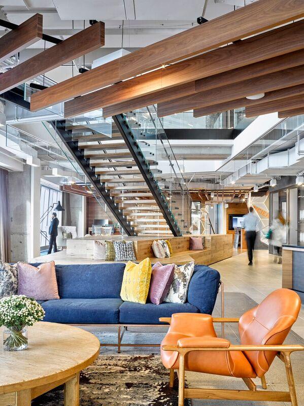 In addition to encouraging more frequent movement, internal stairs also serve as stadium seating for town halls and break out space for individual work or small group meetings.