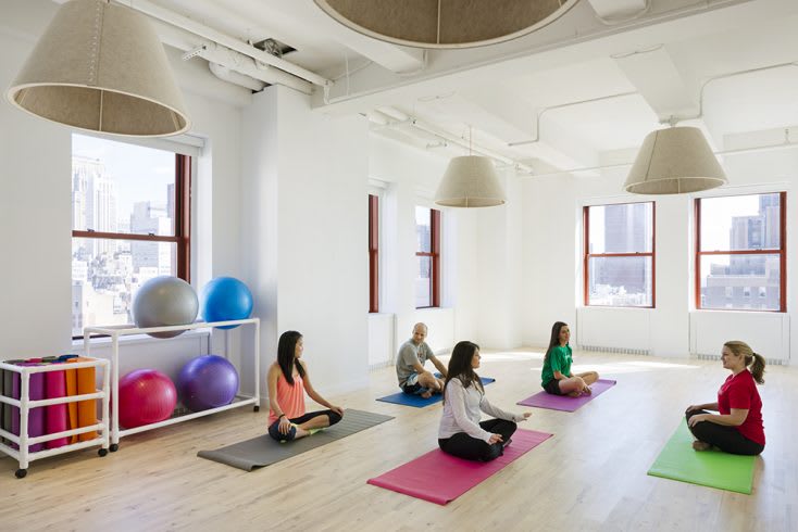 Besides drinks and snacks, companies showcased amenities ranging from game rooms with ping pong and foosball to screening rooms and a private speakeasy.Sometimes doubling as mother’s rooms, wellness rooms are becoming more ubiquitous, furnished with soft seating, worktables, refrigerator, aromatherapy, and more. Convene’s new workplace at 530 Fifth Avenue location devoted an entire floor to wellness.