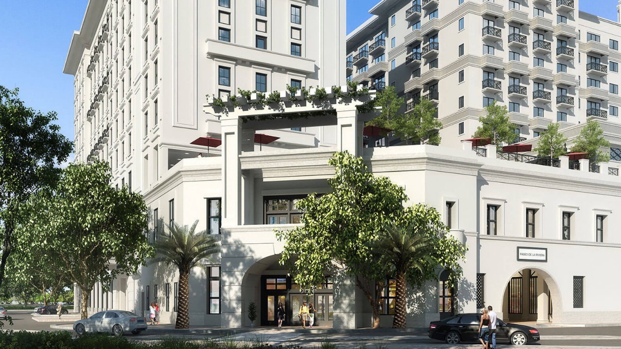 Paseo de la Riviera is a mixed-use project comprised of two buildings; a residential building with approximately 204 residential units and a complementing landmark hotel with approximately 246 rooms, including a presidential suite. Nestled between the building’s ground floor retail spaces is the Urban Living Room —an open, inviting public space that promotes the live, work, play themes which animates the design.
