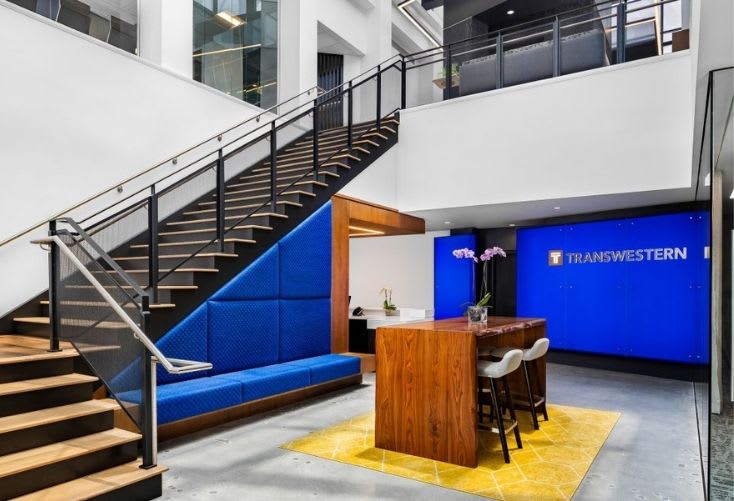 As one example, Transwestern’s new Southeast regional headquarters utilizes its signature blue color throughout the space and illuminates the logo to enhance the arrival experience. Guests are immediately aware of whose office space they are walking into and can instantly understand its values of being an approachable, bright and modern workplace.