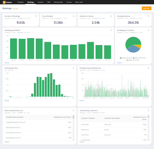 Reporting tools like Nexudus Explore help you make data-driven decisions for your space by providing you with visual representations of how your space is being utilised. Once you’ve got a handle on your foot traffic data, you can use it to inform the following:
