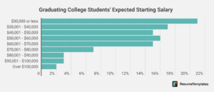 Starting salaries vary widely. About one in five graduates expect to earn less than $30,000 in their first job, while nearly a quarter anticipate salaries between $30,001 and $50,000. Only 2% expect to earn more than $100,000, although one in five believe they’ll earn over $70,000.