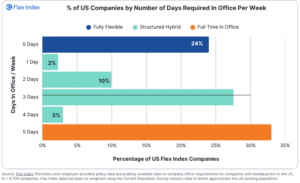 Meanwhile, flexibility has declined among Fortune 500 firms, with 76% now offering it compared to 87% a year ago. The most notable movement is away from “employee choice” models, where workers pick their own office days, down from 13% to 7%.