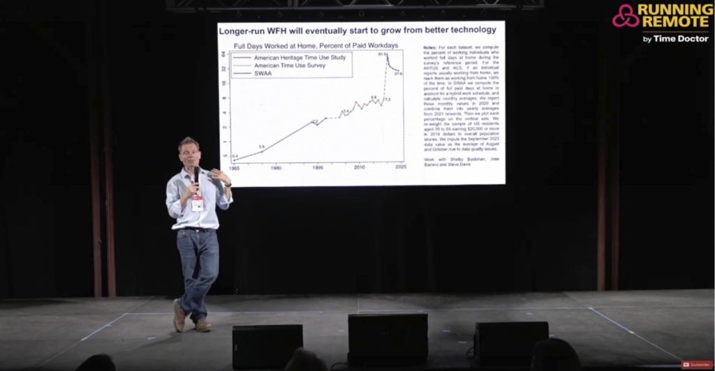 Bloom also shared global remote work trends from a 22-country survey.