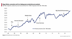 It sees a pivotal transformation in worker productivity at America’s largest companies, driven by lessons from post-pandemic inflation and supercharged by a wave of artificial intelligence and automation.