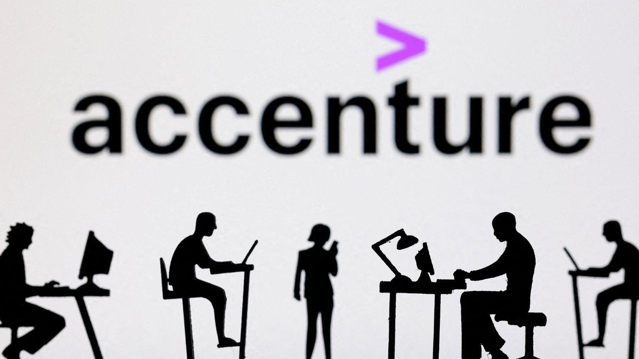 Figurines with computers and smartphones are seen in front of Accenture logo in this illustration taken, February 19, 2024. REUTERS/Dado Ruvic/Illustration/File Photo