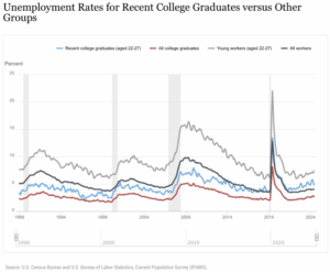 He pointed out that graduates from the age of 22 to 27 have historically enjoyed a lower jobless rate than the overall workforce. But that started to change around 2015—well before the advent of OpenAI’s chatbot in late 2022 and the rush into generative AI that followed.