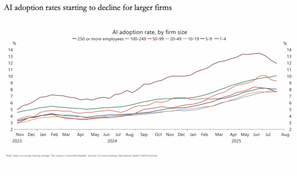 “The bottom line is that the biweekly Census data is starting to show a slowdown in AI adoption for large companies,” Slok wrote in his Daily Spark newsletter on September 7.