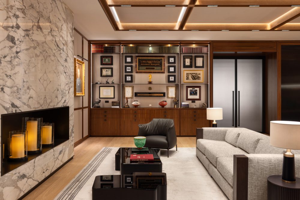 At Lord Abbett’s headquarters, a recent project, the design honors the company’s past. One special part is art made from old company ledgers, documents, and history. These pieces give everyone, no matter their age, something interesting to see and connect with.