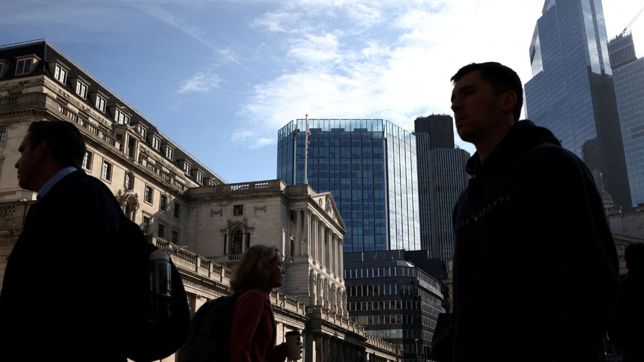 People walk outside the Bank of England in the City of London financial district in London, Britain May 11, 2023. REUTERS/Henry Nicholls/File Photo