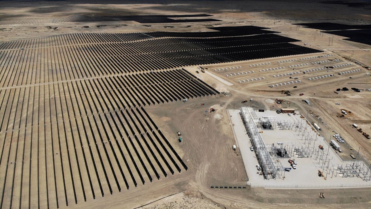 Construction work on solar power arrays continues at rPlus Energies' Green River Energy Center in Emery, Utah, U.S. June 11, 2025. REUTERS/Jim Urquhart/File photo