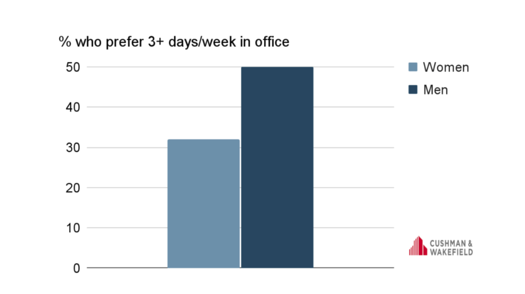 Recent research from McKinsey and Cushman & Wakefield shows that women value workplace flexibility more than men.Cushman & Wakefield, Experience per Square Foot, August 2025
