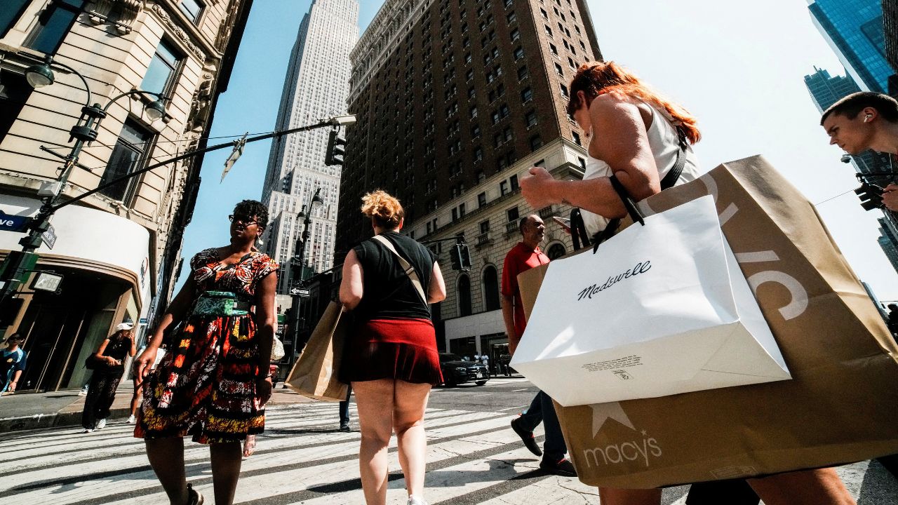 A woman carries shopping bags in Manhattan in New York City, U.S., August 11, 2025. REUTERS/Eduardo Munoz/File Photo