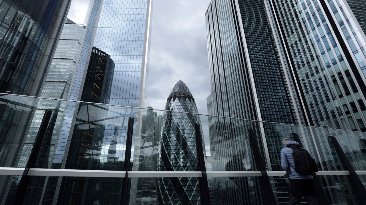 A visitor looks out from the viewing area of Garden at 120 with commercial skyscrapers including The Gherkin seen behind, in the City of London financial district, in London, Britain, September 23, 2025. REUTERS/Toby Melville/File Photo