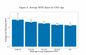 “First, employees work from home more often at younger firms—almost twice as often at firms founded after 2015 as compared to those founded before 1990,” the researchers wrote. “Second, employees work from home more often at firms with younger CEOs.”
