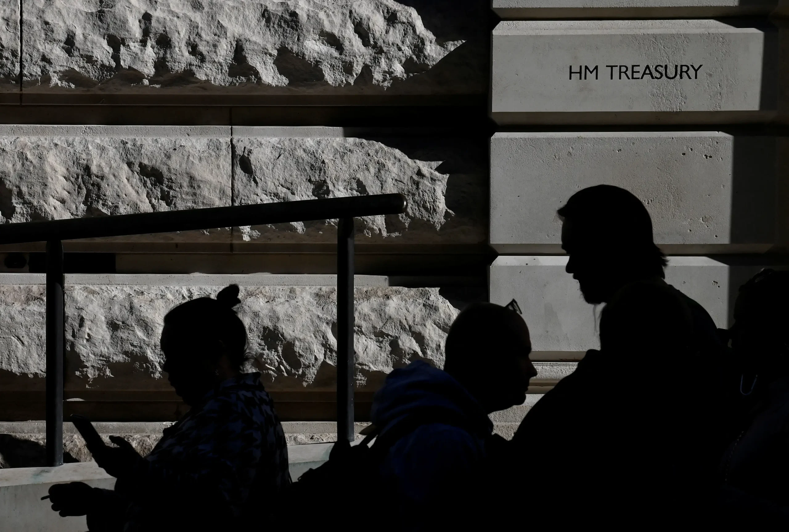 People walk past the Treasury building in London, Britain, October 11, 2022. REUTERS/Toby Melville