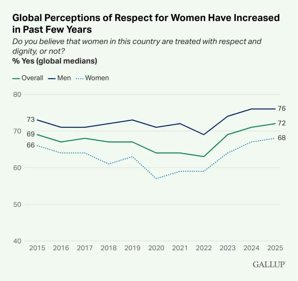 While gender equality is often framed around pay, leadership, and safety, respect is an equally vital but underexamined element. This International Women’s Day, new data from Gallup highlights how global perceptions of respect toward women are changing — and why it matters.