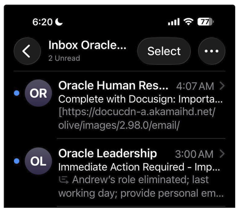 Andrew woke up at his usual time to an unusual message: His job at Oracle had been terminated overnight. He didn’t find out through a call from his boss, or HR, or an email. He figured it out because an AI-generated summary of his inbox told him it had happened.