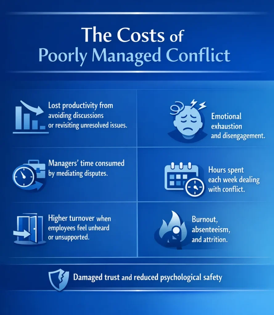 In fast-paced business environments where efficient teamwork and decision-making are essential, unresolved conflict is a costly risk that organizations often overlook.